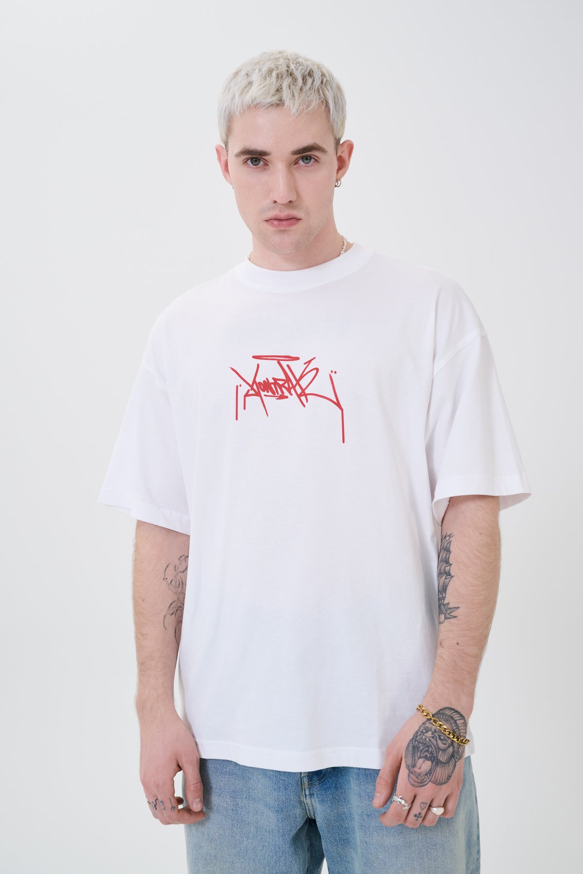 T-Shirt in Red/White Design mit Illustration von KONTRA K