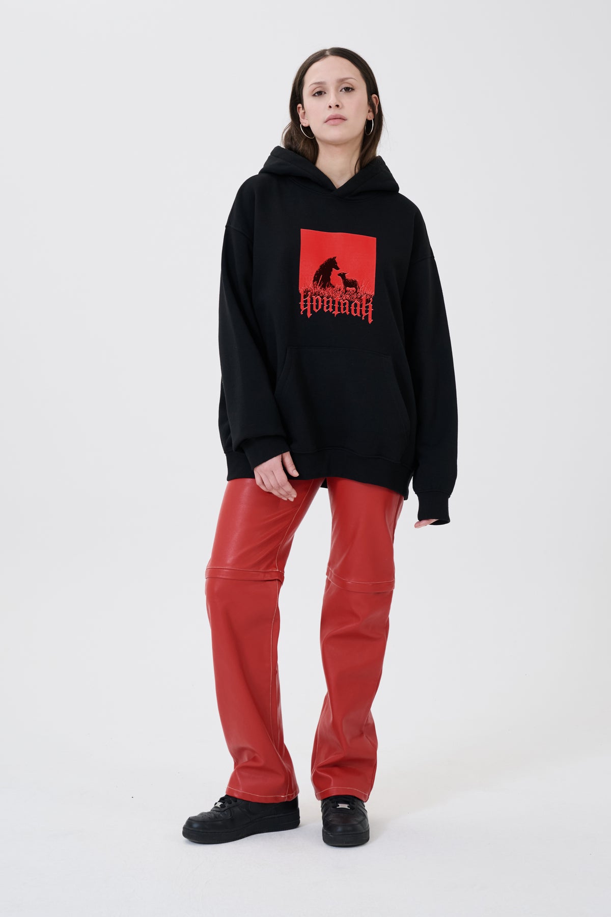 Hoodie in schwarz/rotem Design mit Illustration von KONTRA K